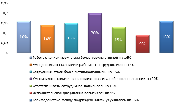 - рост авторитета руководителя, уменьшение временных и эмоциональных затрат при управлении подчиненными