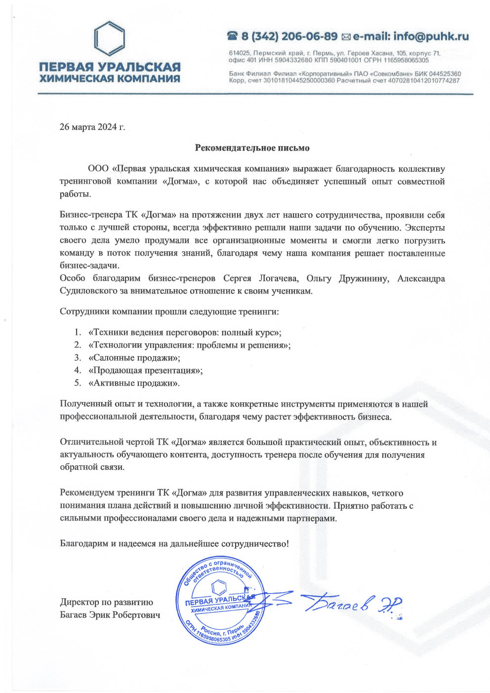 …Благодарим команду TK «Догма» за качественно проведенное обучение, индивидуальный подход, подготовку авторской программы для наших сотрудников.
